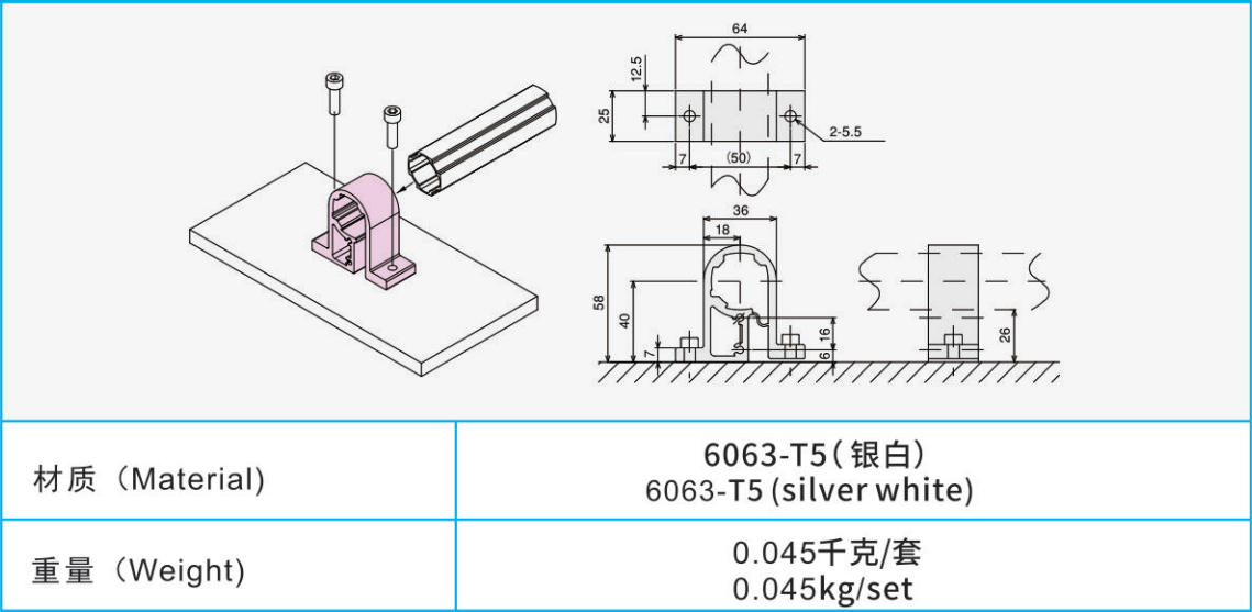 材質:6063-T5(銀白)